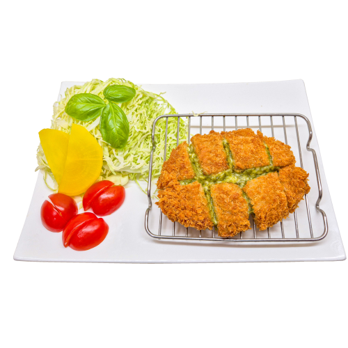 그 안에서 모짜렐라치즈의 깊은 풍미가 자연스럽게 퍼지는 말차치즈카츠.